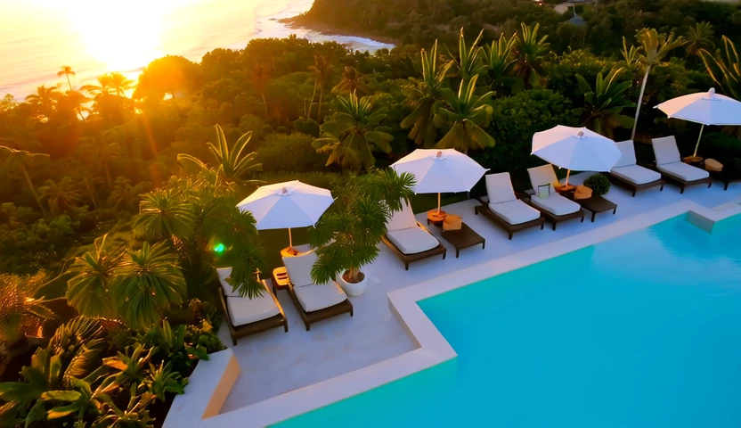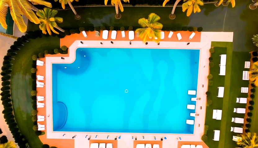 Aerial drone shot of... a luxury resort pool. Not exactly "community association management software" vibes.
